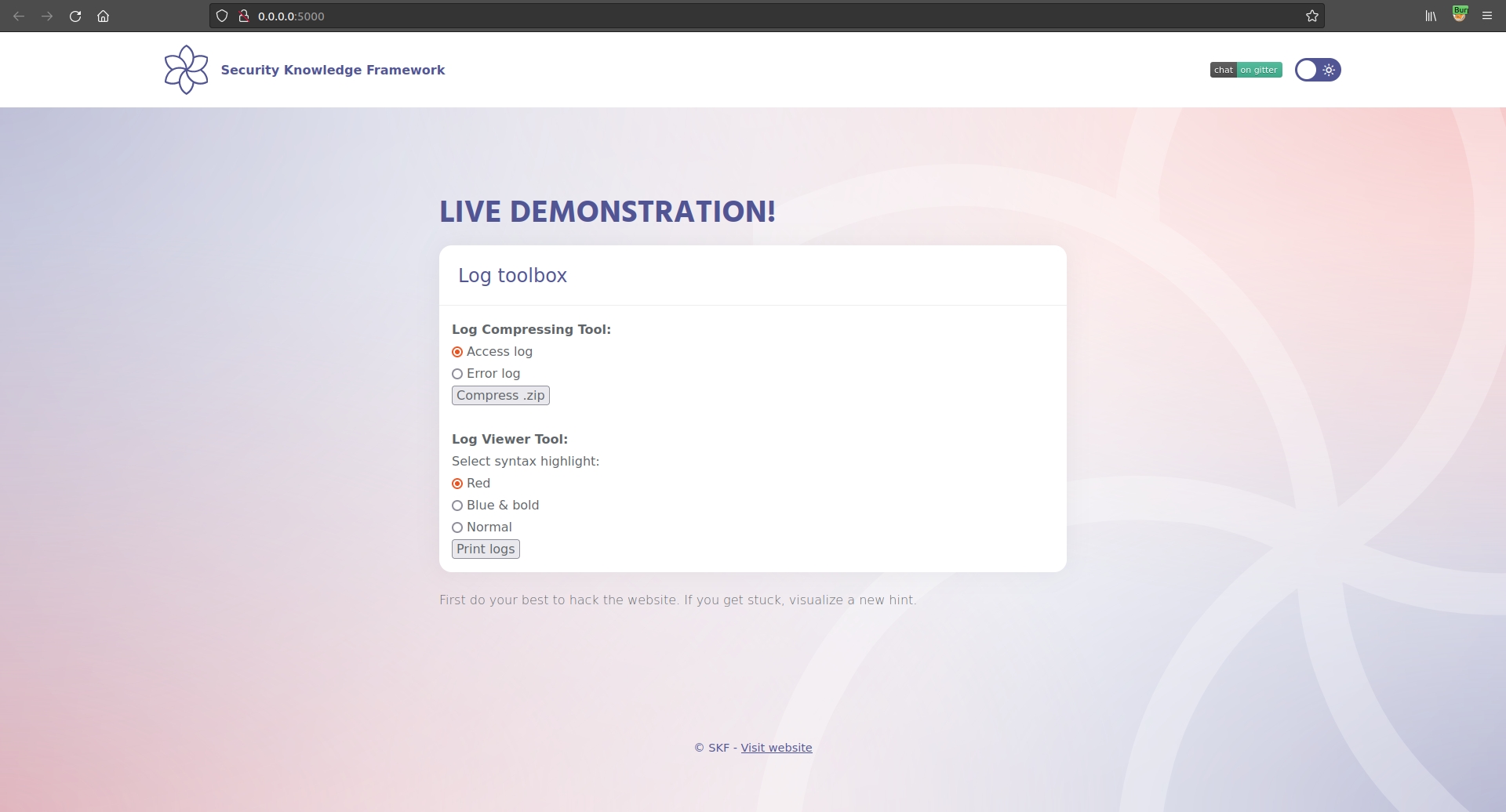 $ sudo docker run -ti -p 127.0.0.1:5000:5000 blabla1337/owasp-skf-lab:cmd2