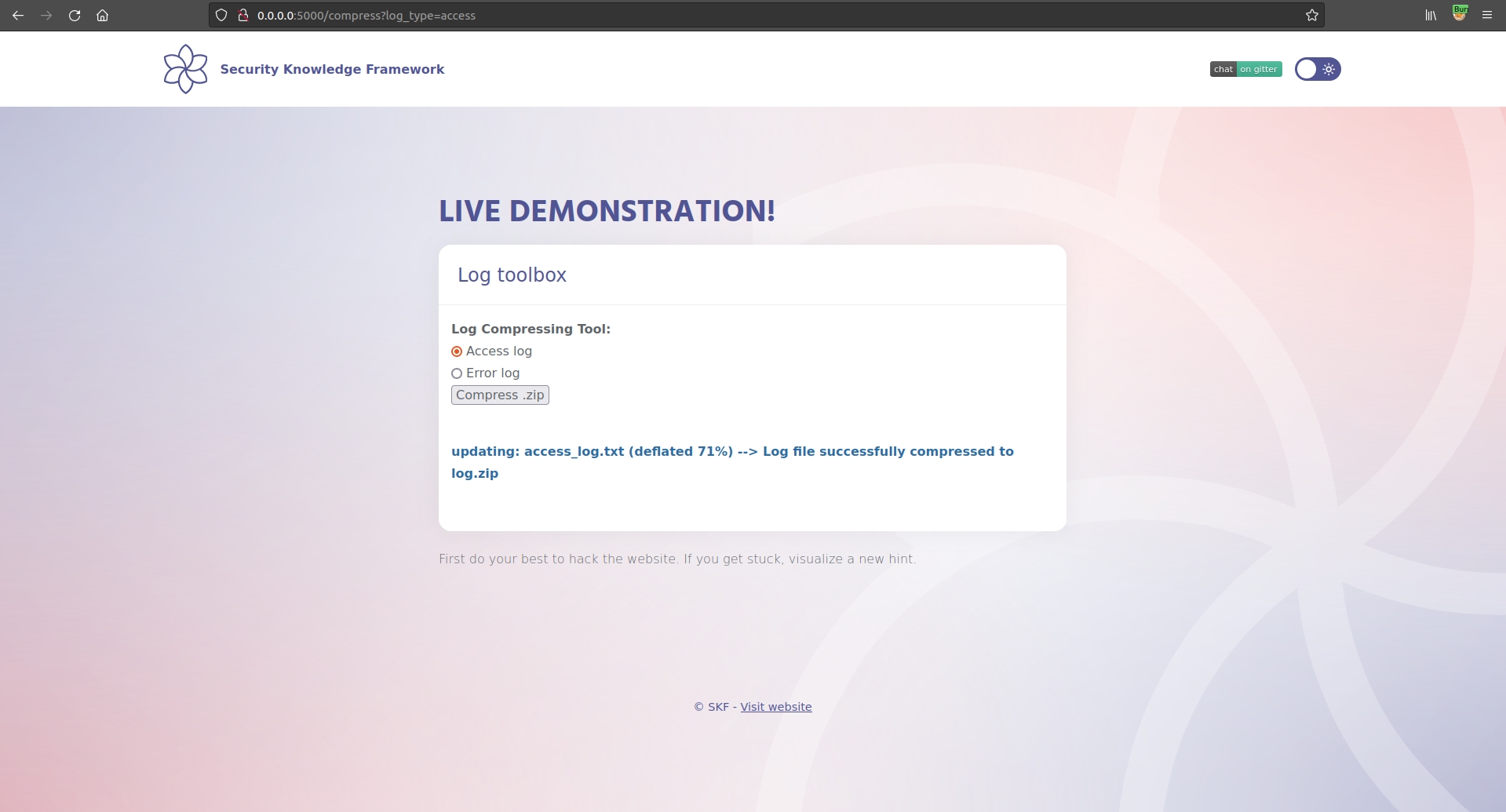 We guess that the output is related to what we write in log_type (access), so we change the input to ABCDEF: