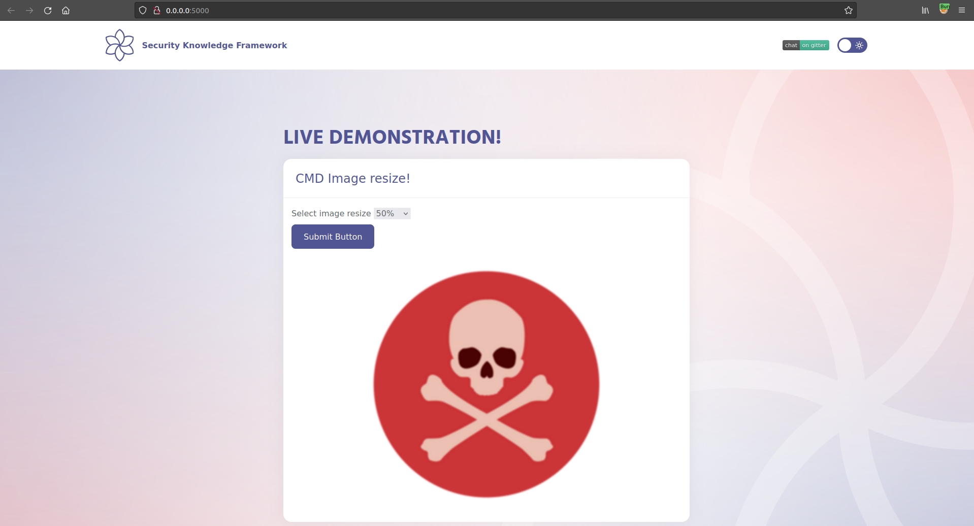 $ sudo docker run -ti -p 127.0.0.1:5000:5000 blabla1337/owasp-skf-lab:cmd