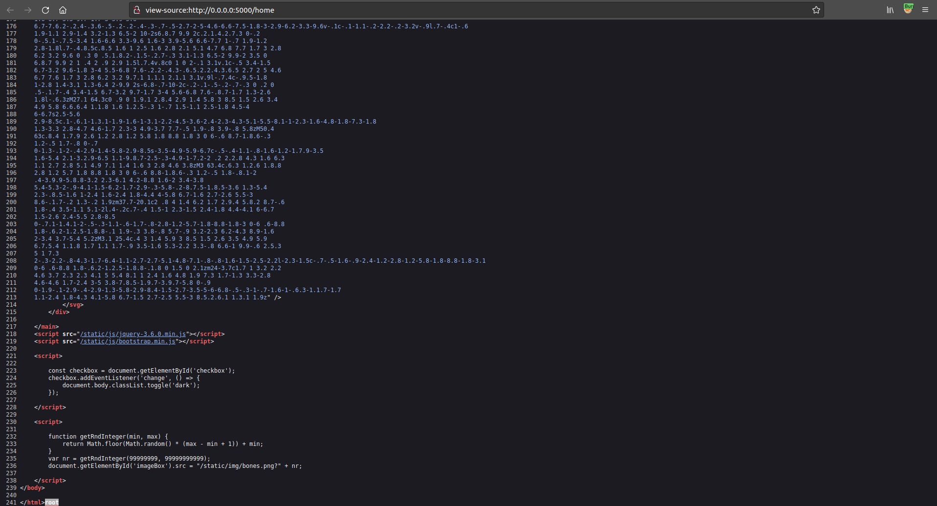to check that the output of the whoami command ("root") was appended at the end of the source code. As we can see, the output of the command whoami, is showing us the priviledge of the target user in the target system and that the web app is actually vulnerable to OS command injection.