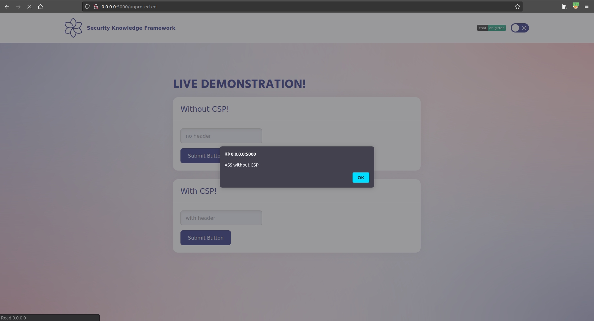 In the first scenario we explore the execution of an XSS attack without CSP in place.