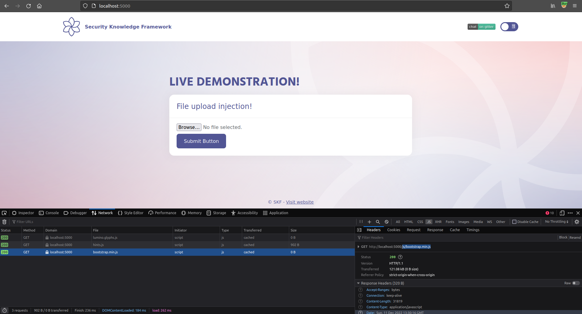 $ sudo docker pull blabla1337/owasp-skf-lab:java-file-upload$ sudo docker run -ti -p 127.0.0.1:5000:5000 blabla1337/owasp-skf-lab:java-file-uploadNow that the app is running let's go hacking!