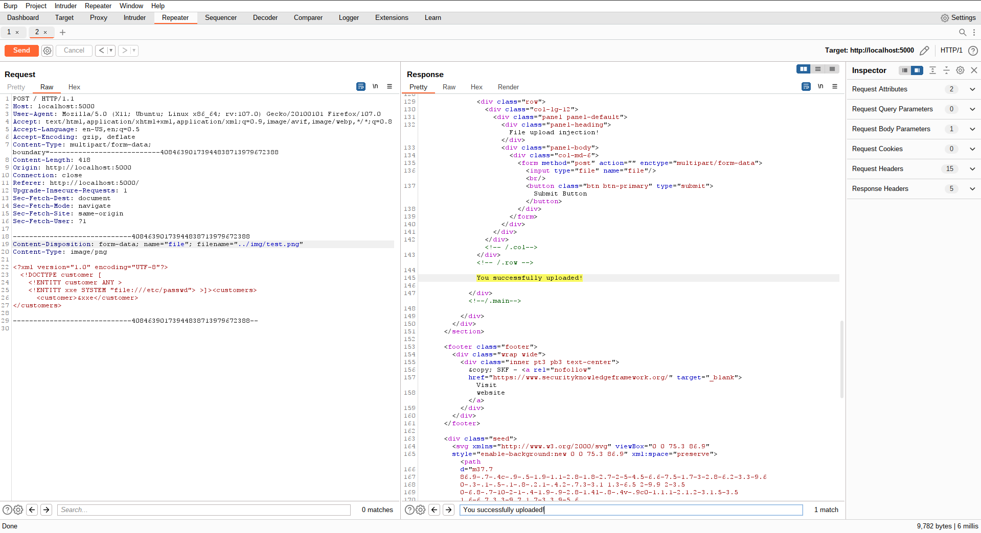 We have tried the path traversal directory injection and we got the message back from the application that the file was successfully uploaded. Now lets see if we can access our file.