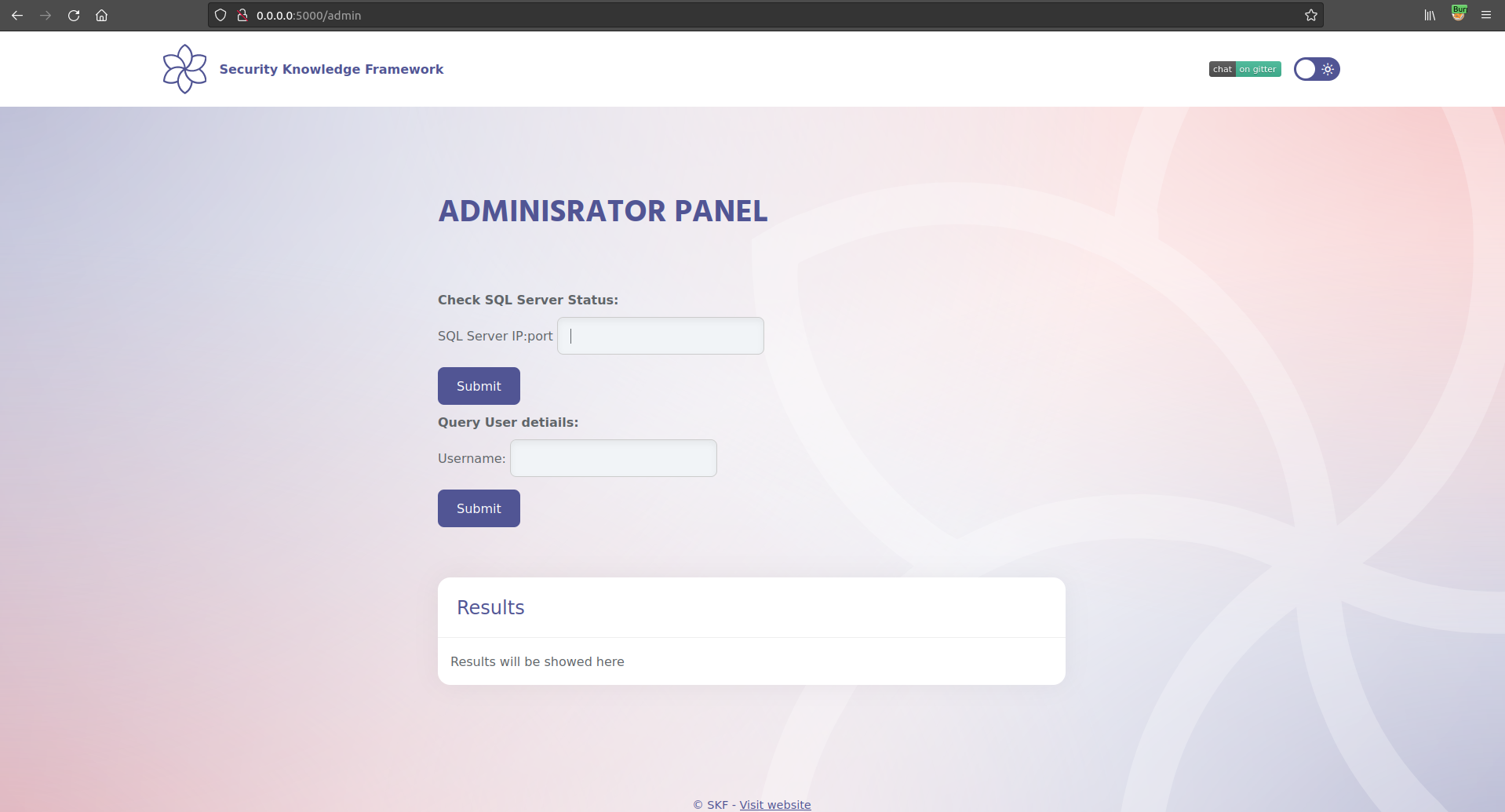 If you run your DirBuster against it or just manually try to guess few of the rountes you will notice the new /admin section of the web app.
