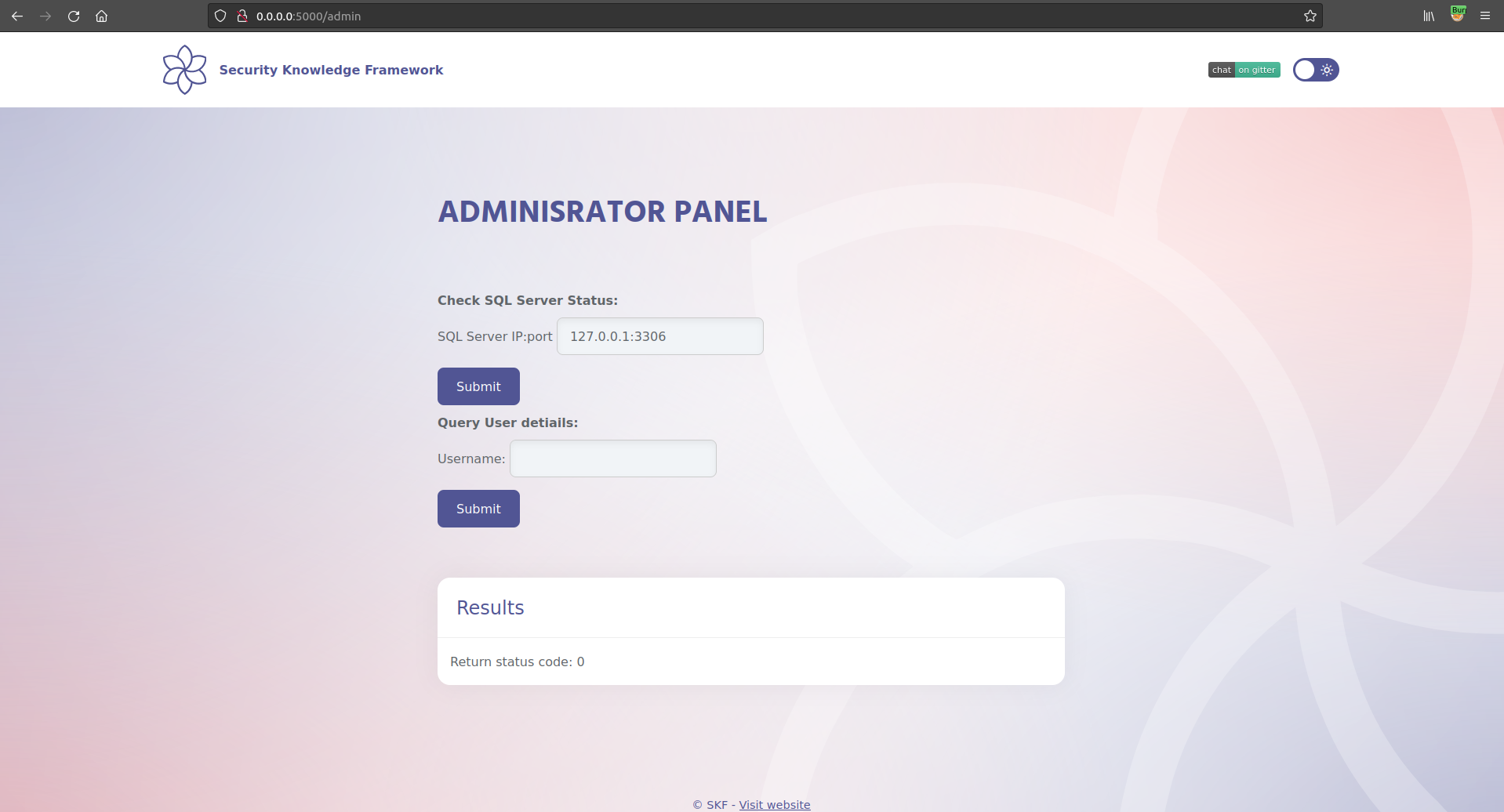 Staying on the same /admin we also see Query User detiails functionality which allowes an Administrator to get information about users by providing username values.