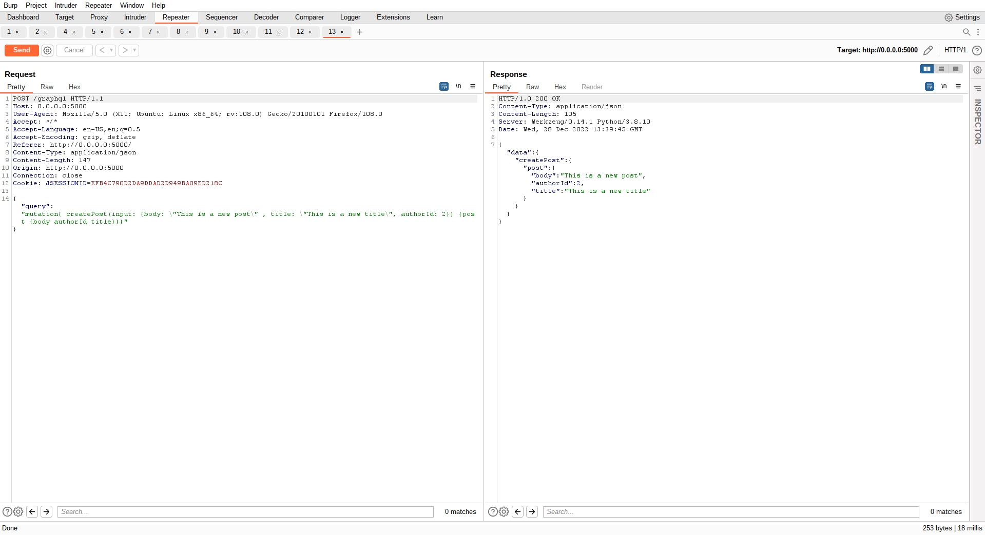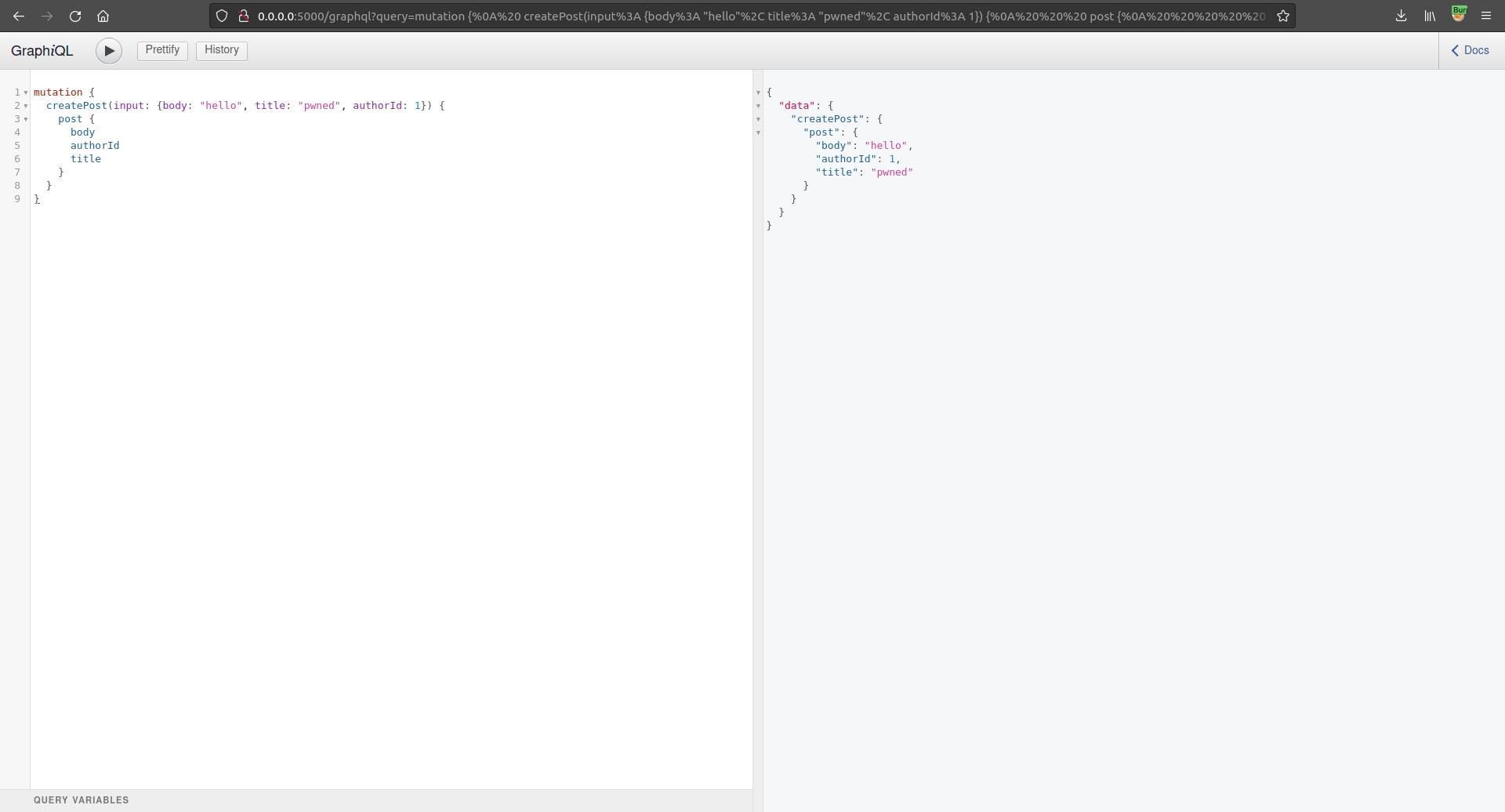 The application implements a very basic mutation to create a new post on the blog. The mutation used is the following