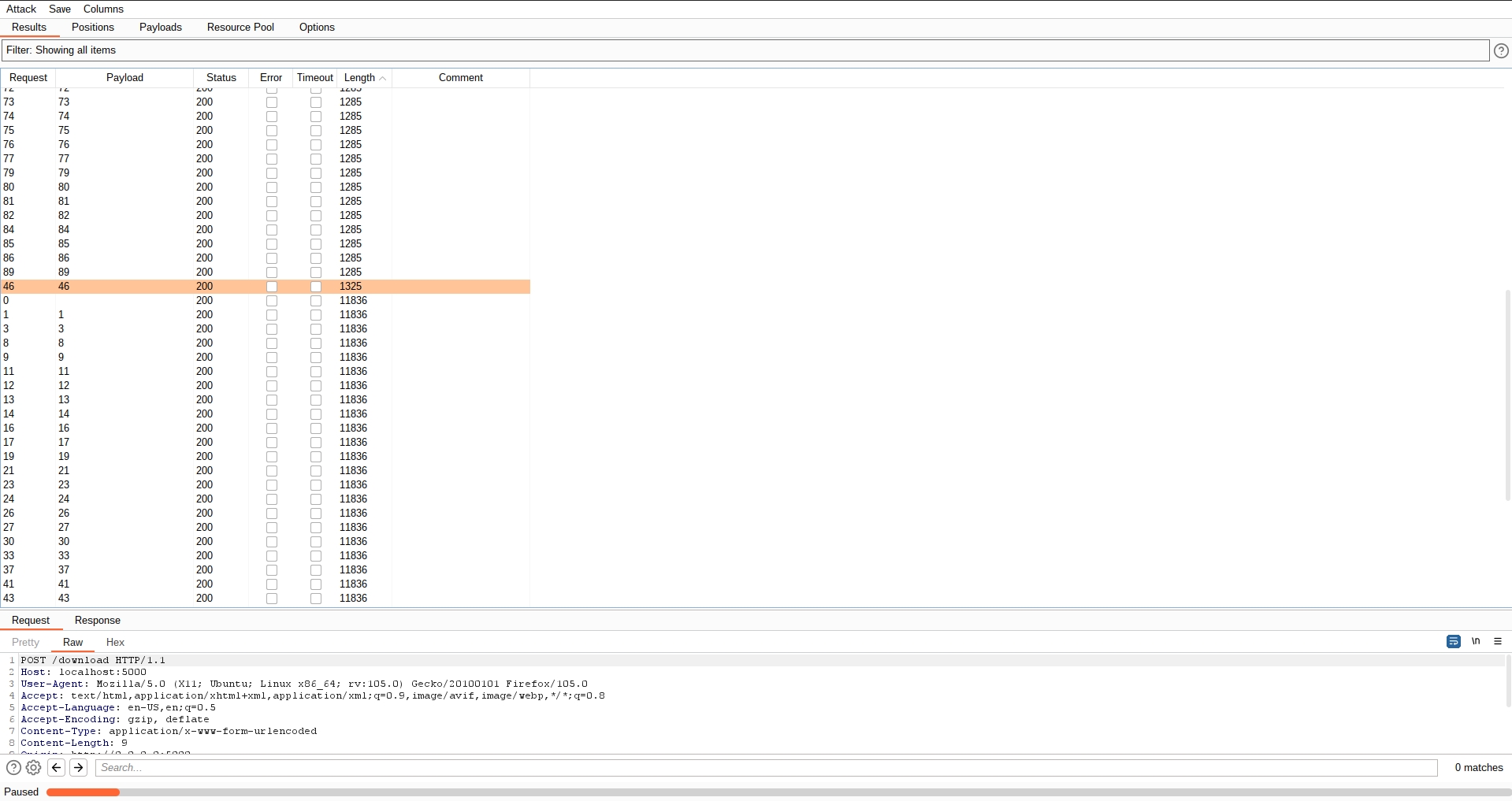 So from the fuzzing results, if we observe closesly the index ID="46" seems interesting as the other ID's seem to have the same response length. Let's check what do we achieve with ID=46.
