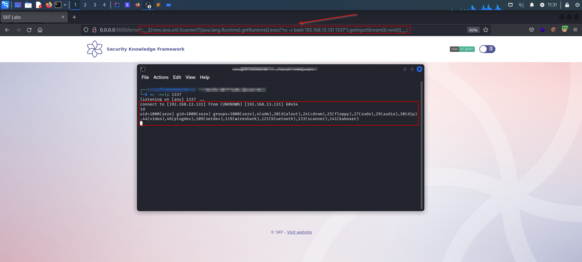 Even tough the result is not seen in the frontend, we can see that 'id' command has been executed on the server logs.