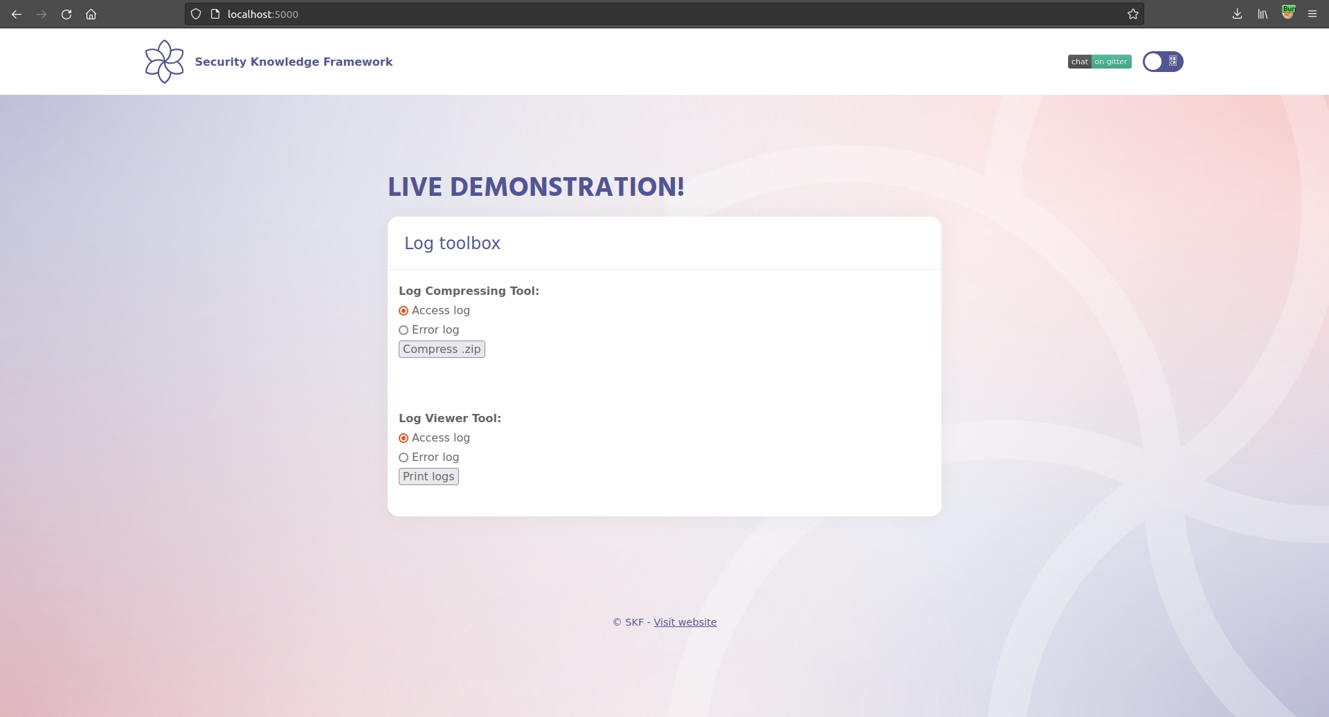 $ sudo docker pull blabla1337/owasp-skf-lab:auth-bypass-1$ sudo docker run -ti -p 127.0.0.1:5000:5000 blabla1337/owasp-skf-lab:auth-bypass-1Now that the app is running let's go hacking!