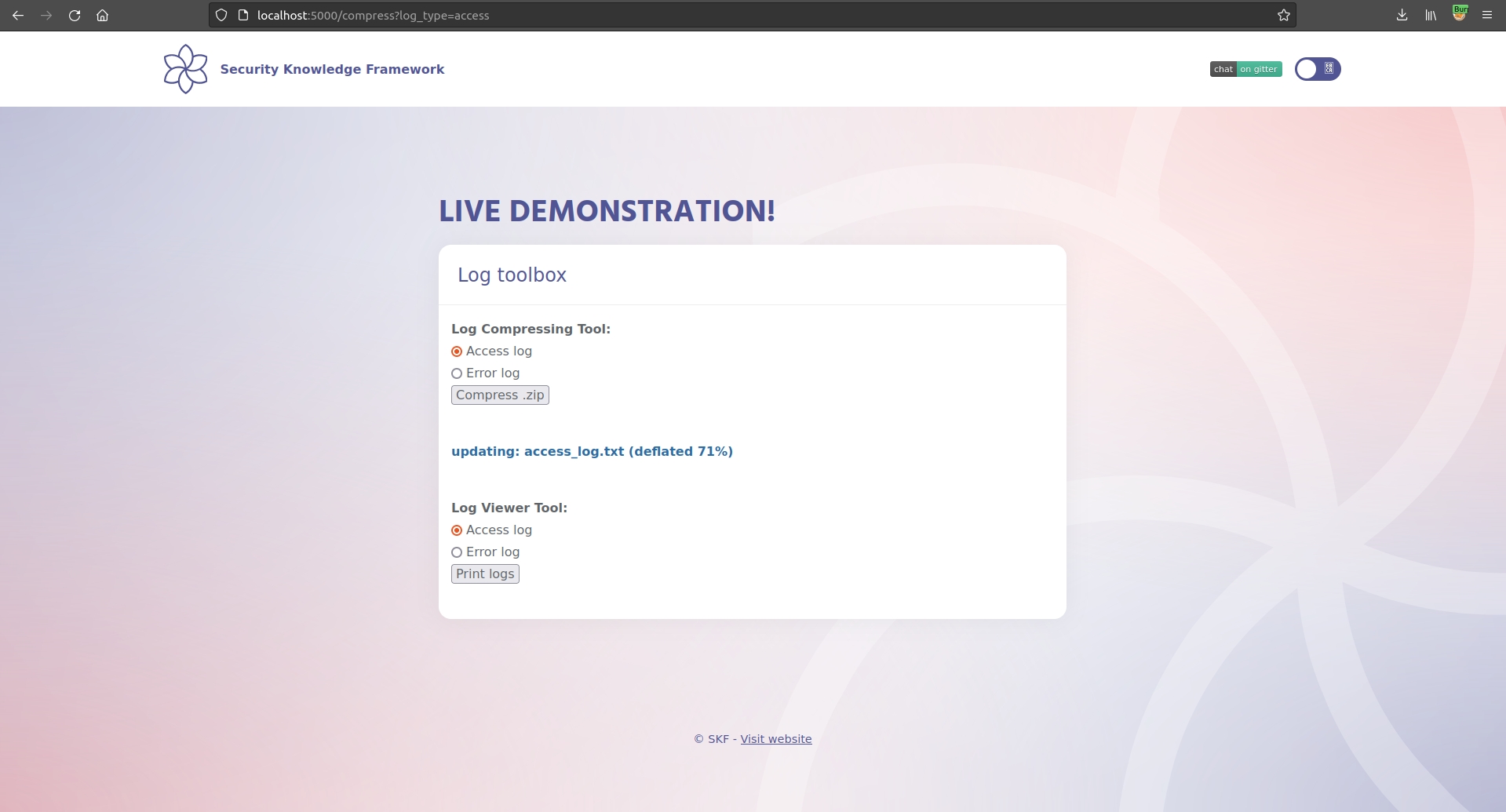 $ sudo docker pull blabla1337/owasp-skf-lab:csrf-weak$ sudo docker run -ti -p 127.0.0.1:5000:5000 blabla1337/owasp-skf-lab:csrf-weakNow that the app is running let's go hacking!
