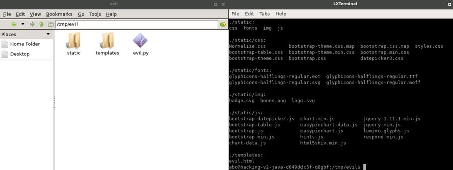 </script>Save the snippet above to > templates/evil.html and run the command below to start our evil application.